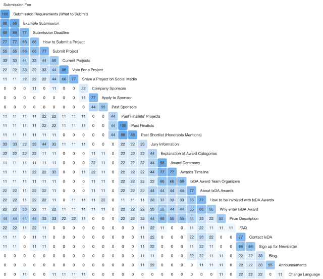 We compared the submissions and awards websites of several leading design competitions to understand the strengths and weaknesses between IxDa’s competitors. Our benchmark categories included: